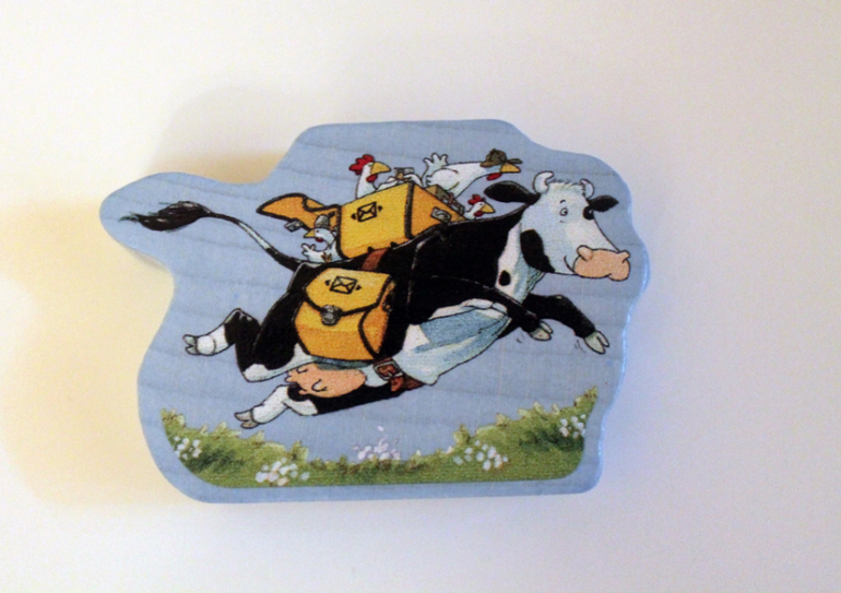 Лизелотта доставляет почту (haba). Мы, как поклонники книг о почтовой корове, не могли пропустить эту настолку). 🐮 В основе мемори механика (принцип похож на Монстры, марш в шкаф): запоминаем изображения на тайлах (здесь их всего-то 9) и доставляем посылки адресатам! Курочки, кстати, все разные - одни купаются, другие обедают, а кто-то увлёкся садоводством! Сама игра довольно простая: тянем карточку с изображением курочки, которой нужно доставить определенную посылку, кладем деревянную коробочку на фигурку Лизелотты и передвигаем ее к тайлу с почтовым ящиком нашего адресата. При этом посылка не должна упасть со спины Лизелотты, иначе ход закончен. Если угадали, забираем карточку задания и саму посылку себе). Цель игры - собрать как можно больше карточек.