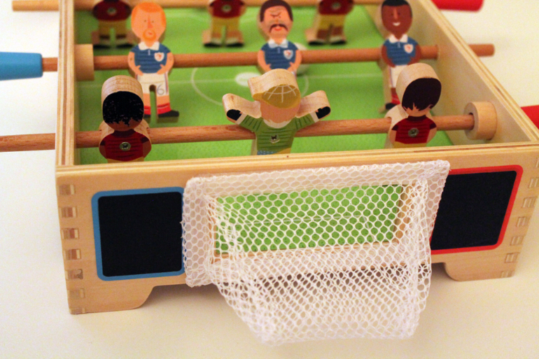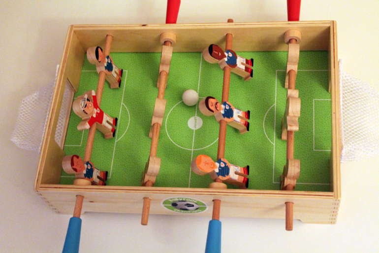Настольный футбол ⚽ (janod) купила весной во время распродажи на avenudesjeux. Привлекла выгодная цена - с доставкой получился около тысячи). Это и стало решающим аргументом, ведь с новым типом игры всегда непонятно: зацепит детей или нет! Очень понравился внешний вид игры, но у janod нам еще не попадались неудачные игры и пазлы. А тут и размеры относительно небольшие - хранить удобно, и исполнение в дереве. Ох, и матчи у нас теперь проходят! Шум-гам! Однозначно, когда подрастут имеет смысл купить футбол с игровым полем побольше, а для первого знакомства этот вариант отличный!