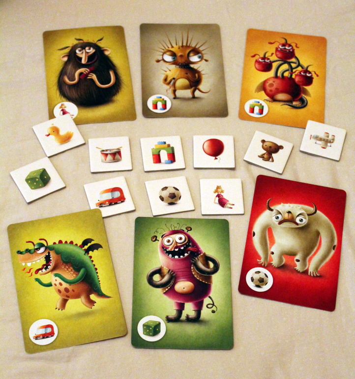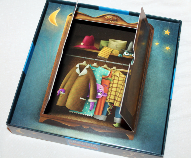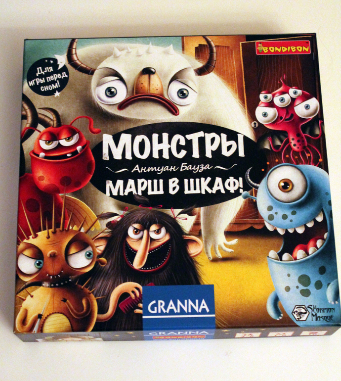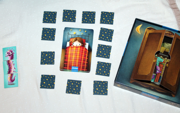 Монстр, марш в шкаф! (Granna) - прекрасная игра с мемори механикой для малышей! Жаль, что она практически исчезла из продажи. Цель игры - загнать всех мостриков в шкаф. А сделать это можно только напугав монстра единственной игрушкой, которую он боится (изображение в углу карты). Начинать смело можно с 2,5-3 лет, ведь запоминать придётся расположение всего 12 тайлов с игрушками. Ещё ни разу не смогли ограничиться 1 партией, обычно играем 3-4 раза подряд!))) И хотя игра заявлена как "перед сном", на ночь никогда не играем - слишком много восторгов у детей вызывает изгнание монстров с криками "Марш в шкаф!"