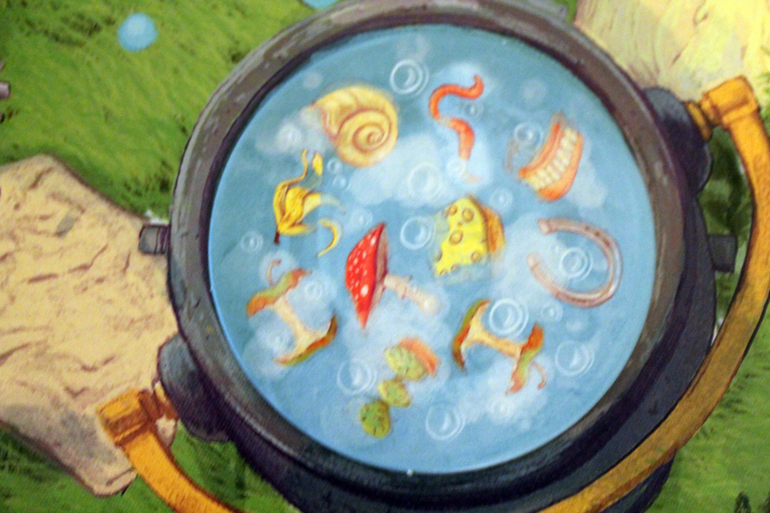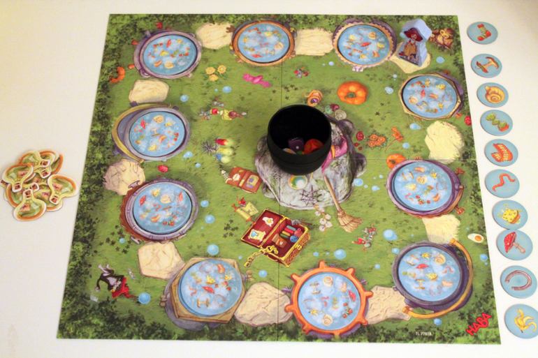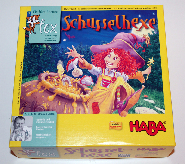 Забывчивая колдунья (haba). Судя по количеству сыгранных партий, эта игра определенно одна из лидеров! 😊 В каждый из котлов ведьма забыла положить один из ингридиентов. Наша задача - как можно быстрее разобраться, что это за предмет и взять соответствующий тайл! Заявленный fex-эффект оказался очень любопытной штукой! По мере усложнения на каждом этапе добавляется еще один кубик, и приходится держать в уме все больше условий для следующего хода. Отличная тренировка концентрации внимания и его переключения с одной задачи на другую! Мы пока играем с 1-2 кубиками, с 4 и у меня голова начинает идти кругом))) 😵
