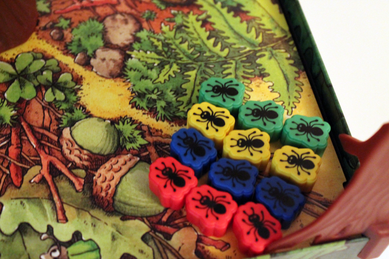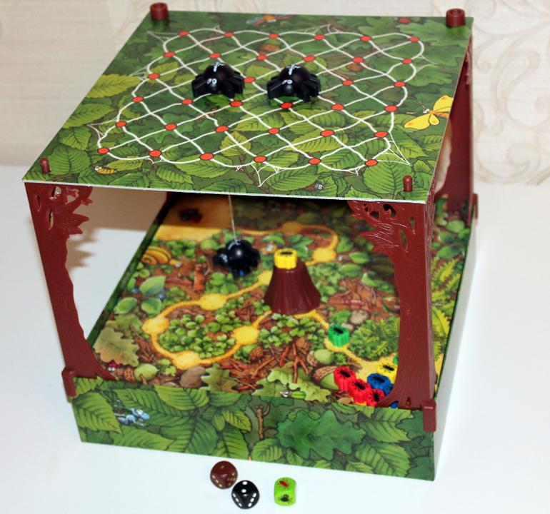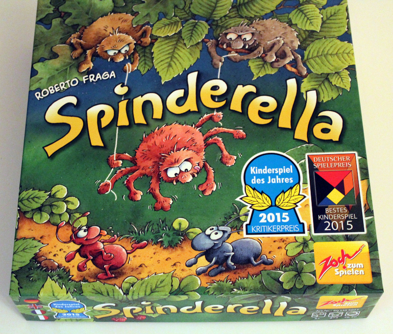 Spinderella (zoch) - одна из самых эффектных игр в плане оформления! Двухуровневое игровое поле, паучий кран - в какой еще игре такое встретишь?! По механике это ходилка, которая будет по силам и маленьким игрокам. Цель игры - первым привести своих муравьишек к финишу. Но пауки не дремлют: в любой момент могут схватить вашу фишку! (и те, и другие снабжены магнитами)