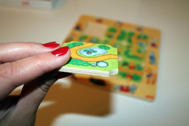 Найди тропинку (goki) - логическая игра, в ходе которой нужно разместить тайлы тропинок таким образом, чтобы соединить 2 пары лесных жителей. У bondibon есть аналогичная игра - Колобок-следопыт, но goki лично мне понравилась больше: милые лесные обитатели, да и само поле и тайлы деревянные. Надо сказать, что выполнить задание не так то и просто! Поэтому здесь возрастная маркировка для нас совершенно оправданная - 4+.