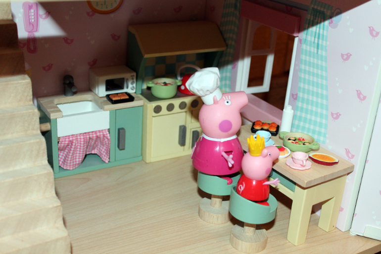 Сразу скажу, мебель Sylvanian действительно немного мельче, но не критично. У Le toy van изначально небогатый выбор наборов мебели: мы покупали "Гостиную", "Кухню", "Спальню", "Ванную" и "Детскую". А многие предметы интерьера (например, "Большой обед", "Фортепиано", "Буфет с микроволновкой", "Телевизор" и др) купили Sylvanian.