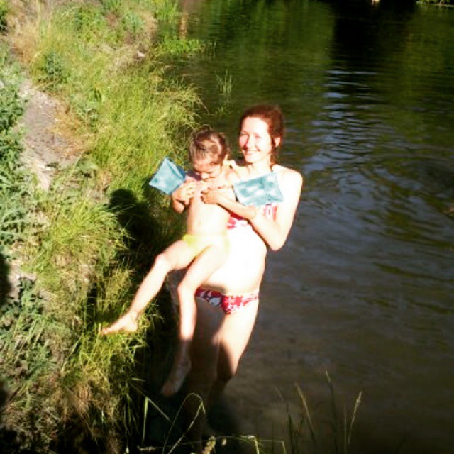 А еще плавает она, плавает, как рыбка ) И ныряет. А научила её моя мама. Потому что со мной она только в нарукавниках плавала.