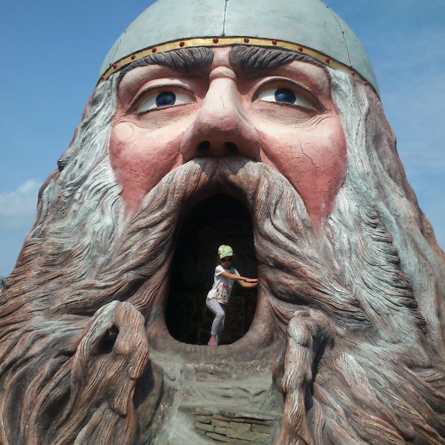 Еще мы были на фестивале кузнецов, Алине дали постучать молоточком по наковальне. Это была основная миссия. А слоган был умереть не встать "Куй во славу святой Руси, помилуй Господи и спаси"