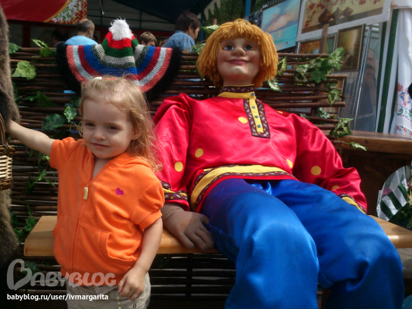 Были сегодня на ярмарке в Центральном парке. Насмотрелись на поющих женщин, и тетушек и бабушек, перетрогали всех матрешек, унесли оттуда лошадку свистелку