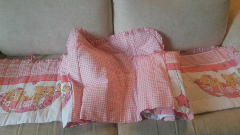 Продаются 2 комплекта бортиков в кроватку для младенца желтого и розового цвета. 100% хб. Состояние идеальное: дети отказались пользоваться кроватями. Каждый комплект по 1000 руб. Самовывоз Куркино или метро Пролетарская или встреча в вечернее время по сиреневой ветке от Пролетарской до Планерной.
