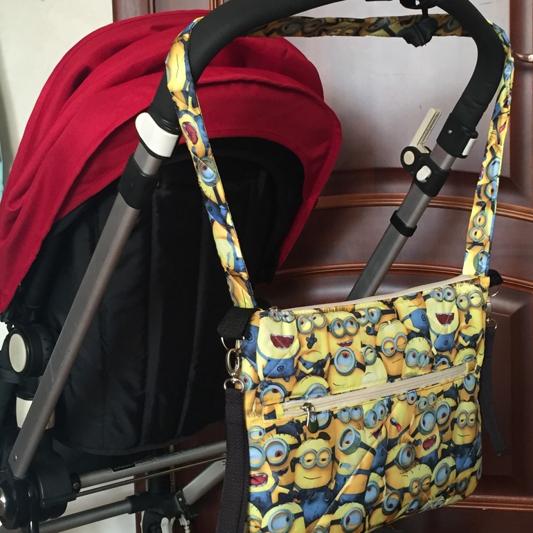 Сшилась сумочка по мотивам сумки JuJuBe. Застегивается на липучку, внутри 1 большой карман на молнии и 3 открытых кармашка. Сбоку кармашки с отделкой светоотражающей лентой. На ремне есть специальные крепления ( сумку можно повесить на крючки ).