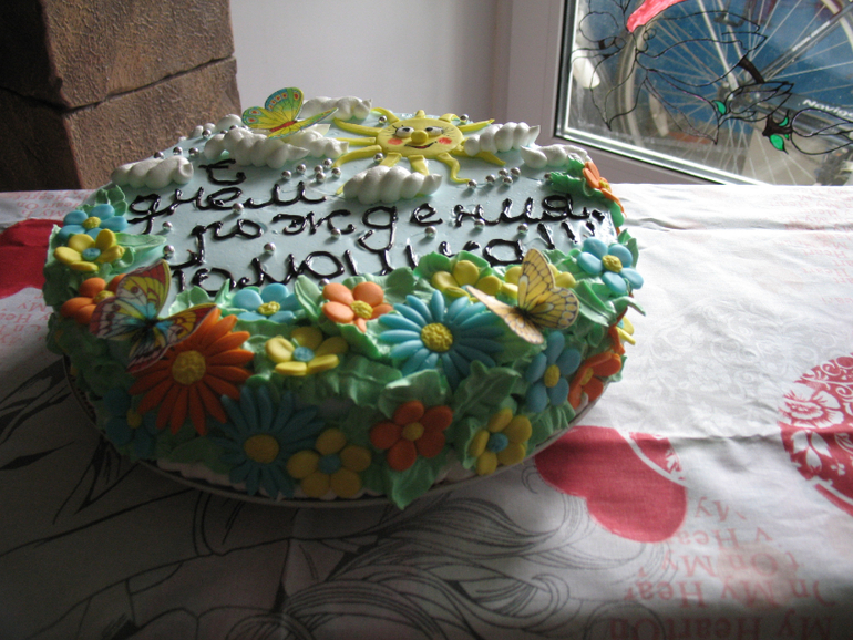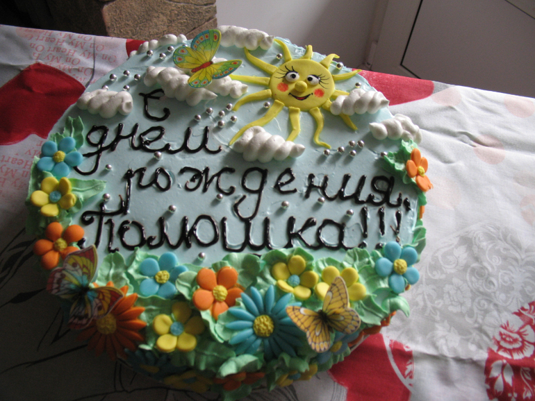 Мой первый эксперимент с сахарной мастикой. Торт на день рожденье доченьки.