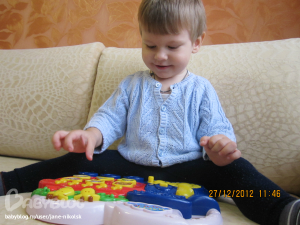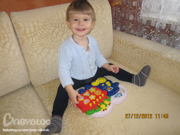 Это уже в обед - отдали первую игрушку... Пока мама в хлопотах...