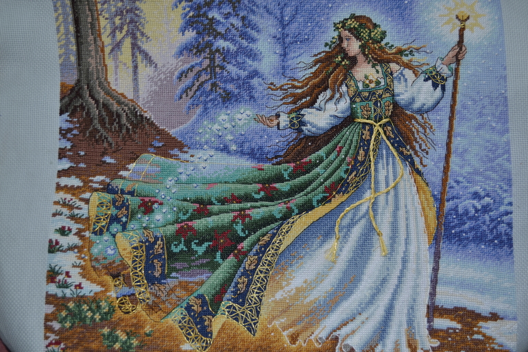 Вот и закончила я свою красавицу. которую вышивала ооочень долго, года 3 точно, с большими перерывами на другие работы. Благодаря последнему ВД я закончила все крестики, а за июль всю остальную красоту