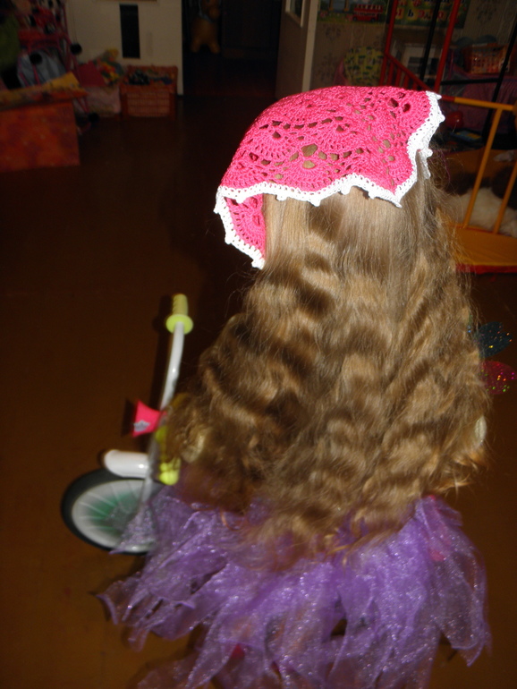 Мои хобби!У нас опять холодина, тепло было 2 дня! все опять дожди и холод! И один такой холодный дождливый денек, связала я моей принцессе косыночку! Вязала один день! К нашей юбочке! Юбочка тут
