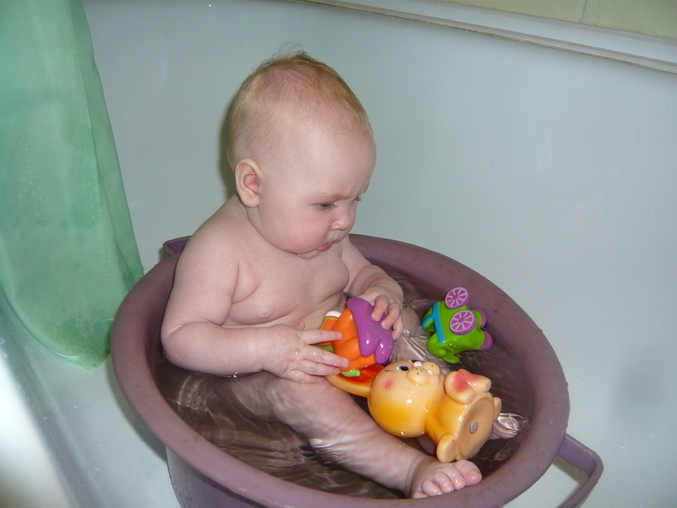 Ай да Соня, а да молодечик! серъезная такая малюська))) вот тоже хотим так искупаться-посмотрим заинтересует или же нет...под душем сыну очень нравится, думаю и в тазике понравится)