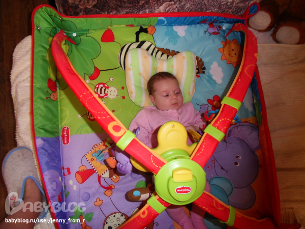 внимательно следит за мной, как я выхожу из комнаты и опять появляюсь, она сразу улыбается, начинает ерзать, головой ворочает на звук, на голос, всякие шуршания ее отвлекают, на погремушки, есть и любимая у нас игрушка мягкий дракон ДУСЯ)))каждое утро как она просыпается, всегда улыбается, кладем рядом с ней Дусю, она начинает с ней гулить, улыбаться, что-то ей рассказывает.