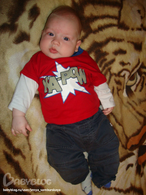 Вот сынишке и пол-годика! так гордо звучит)))) уже совсем большой стал......смышленее и проворнее ))) да и мне стало гораздо "веселее",теперь не присесть.....))) и тренажеров не нужно))) требуется мое внимание и скорость...то прыгнет,то дернет,то отскубет,то возьмет то,что нельзя......особенно нас привлекают все веревочки,шнурочки и провода