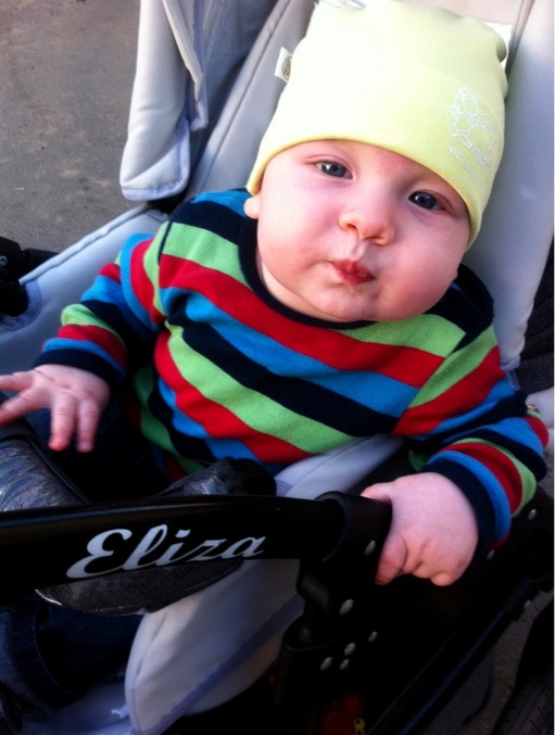 Денек вышел отличный...солнышко, почти лето.... Собрались мы на прогулку, с утра не спали и на улице первые 10 мин ни в одном глазу, 20...30...1,2 и я поняла, что ребенок спать просто и не собирается))) мы встретили знакомых и устроили, впрочем как и все , небольшие посиделки )Остапушка мало что не спал, так еще и принимал активное участие в беседах взрослых))) я от его бессонницы в шоке))) несколько раз подкрепившись грудью, мы решили пройтись к фантану, оставив всех, так он поднялся(сел) и , как пахан, ехал и все внимательно рассматривал, мне так смешно стало...