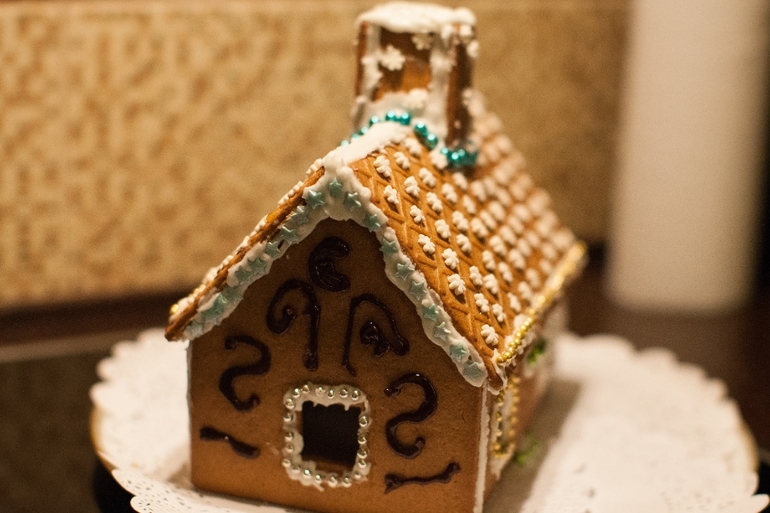 Пряничный домик - маме и сестре. Начали собирать вместе с детьми, но им быстро надоело. Труба кривовата, но это потому что деталь была сломана (печенье готовое, из Икеи, я лентяйка.)