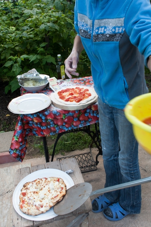 Через некоторое время стало ясно, что в духовке это не приготовить. И тесто правильное, и томат, и сыр, но температура не та... Поэтому муж (тоже любитель "правильной" пиццы) решил строить на даче печь. Для пиццы.