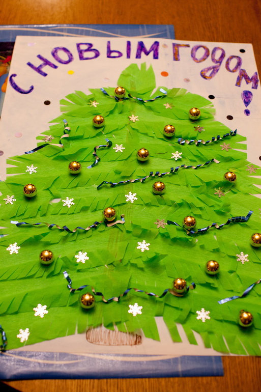 Сегодня мы продолжили готовиться к украшению школы - делали новогодний плакат.