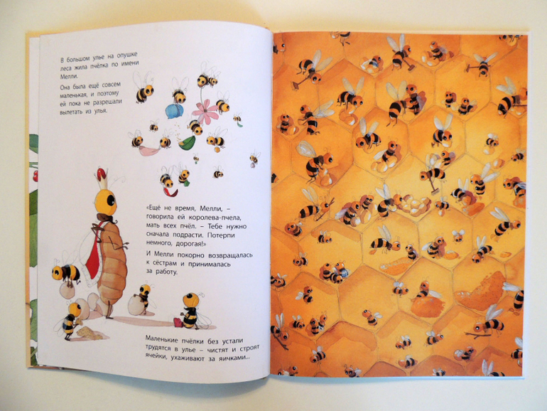7. История о пчелке, которая впервые вылетела из улья и о том, что из этого вышло. Мне эта книга нравится еще и тем, что можно наглядно объяснить жизнь пчел.