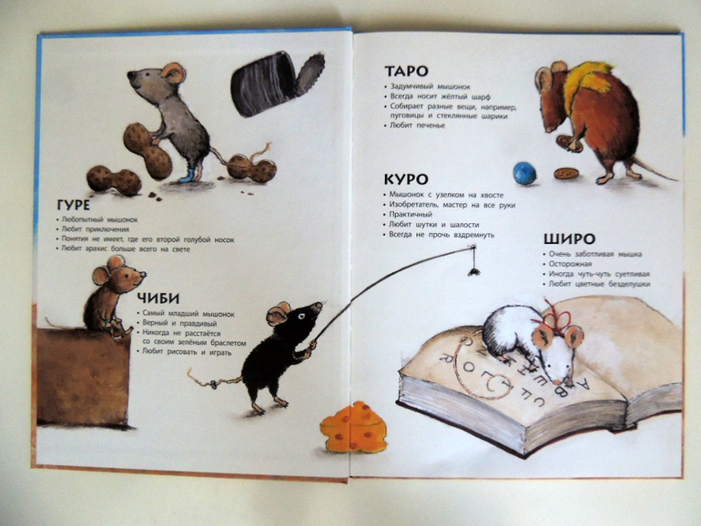 Самый наш любимый разворот с именами мышат, я их, боюсь, никогда не запомню, а вот Варя уже выучила всех )