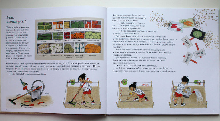 Книга о том, как девочка Таня приехала из города в деревню и помогала сажать огород. Ну, это если совсем вкратце )