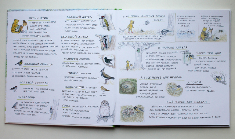 Тут даже форзацы по максимуму заняли - на первом рассказывается о видах птиц, их жизни.