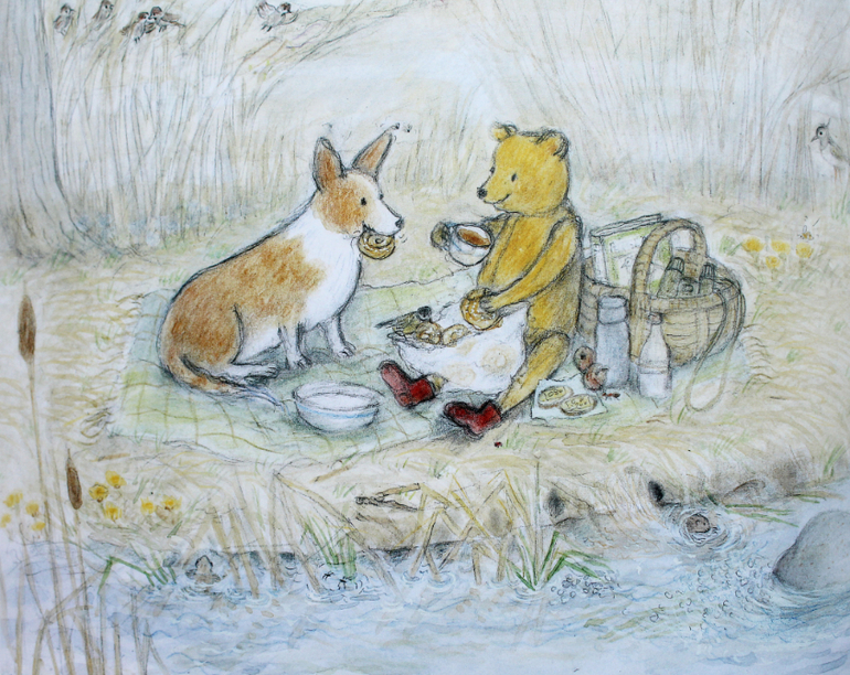 А акварельно-карандашные иллюстрации такие теплые. Это моя любимая: