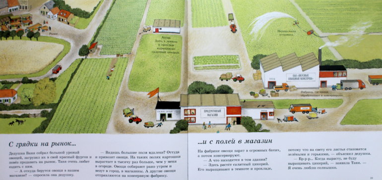Эта книга - это хорошая помощь, чтобы рассказать ребенку о названиях овощей, садовом инвентаре, процессах выращивания овощей и прояснить взаимосвязи в окружающем мире. Ну, и красивая....