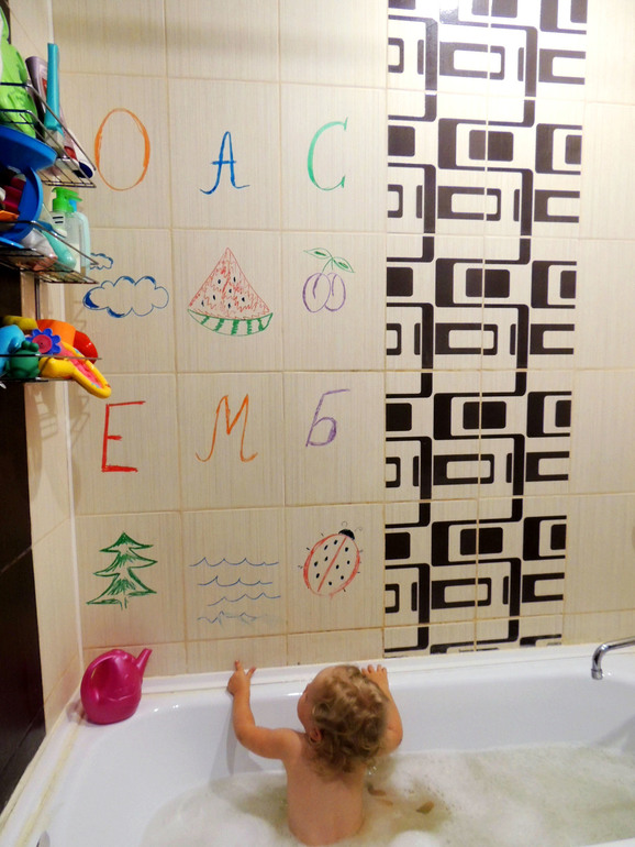 А вдохновившись одной известной инстаграм-мамой, мы вот так преобразили ванную. Правда, тогда Варе больше понравилось ее отмывать ) Надо бы повторить, весело было!