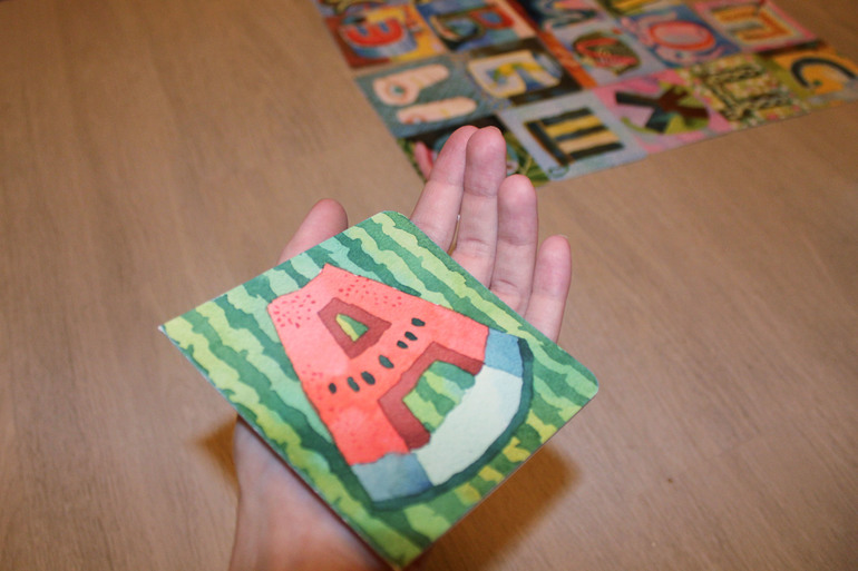 Мы ее немного подкорректировали тем, что делаем только по одной картинке для каждой буквы, но стараемся делать качественно, чтобы сохранить на память.