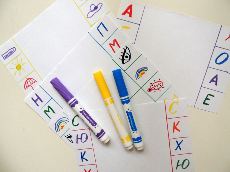 Вот потихоньку и мастерим. Хотя периодически забываем, поэтому у нас только треть алфавита пока. К тому же Варя его уже немного "подновила" частыми просмотрами)
