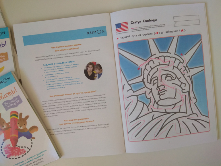 От России для виртуального путешествия авторы выбрали Собор Василия Блаженного. Он почти в самом конце тетради (а сложность заданий по мере прохождения растет) и как Варя ни хотела начать с него, по личным мотивам ), в нем запуталась напрочь. Пришлось возвращаться к началу тетради.