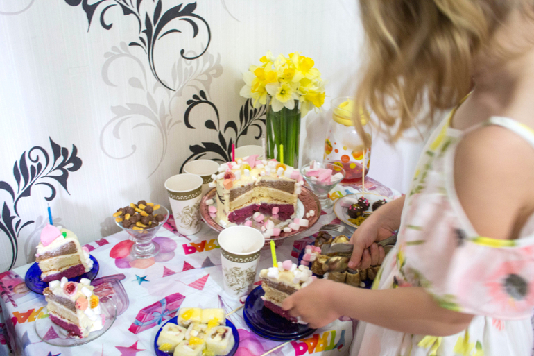 Это вообще был экспресс торт из готовых коржей и остатков крема основного торта , когда внезапно еще партия гостей решила привалить)