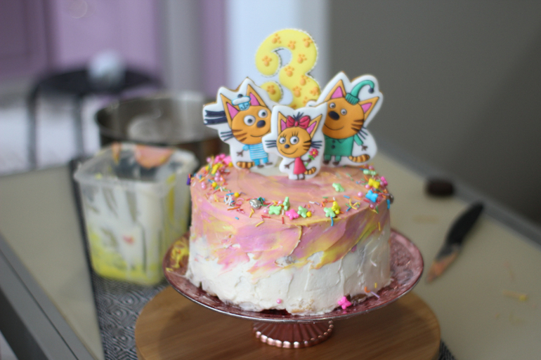 Полезла в прошлогодние фотки вот... Мастером себя явно не считаю, точные пропорции вечно не соблюдаю, собираю коржи вечно на бегу, покупаю все в последний момент, психую малость )) но мне кажется, это такое милое воспоминание из детства, что мама тебе ваяла тортики сама , ну и процесс по кайфу, конечно)