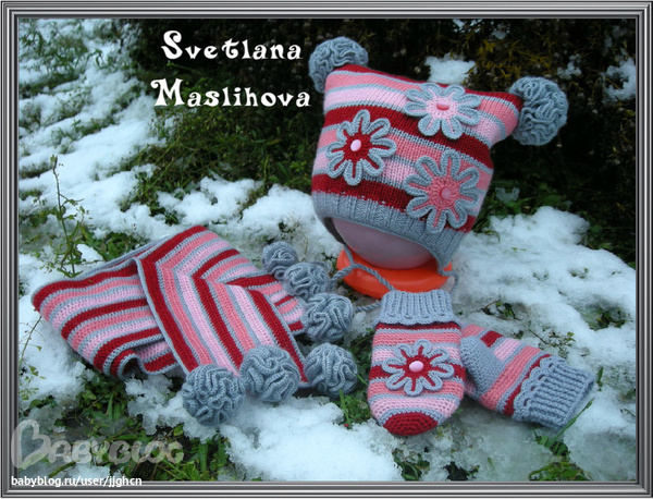 Я с очередной шапочкой и шарфиком, модель шапочки очень популярна в интернете, вот и я добралась до неё. Пряжа заказчика, какая не могу сказать, знаю, что шерсть с акрилом, розовая и белая Нако бамбини, крючок №2.