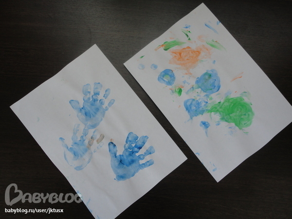 Это наше совместное творчество пальчиковыми красками: ладошки и колобки