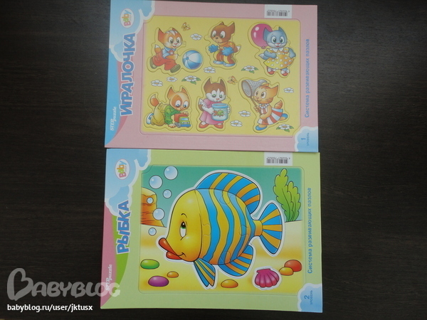 Вот эти недавно купили, кошек собрала со второго раза, а с рыбкой сложнее, из-за замочков у нее не сразу получается вставить элементы, но куда что положить знает.