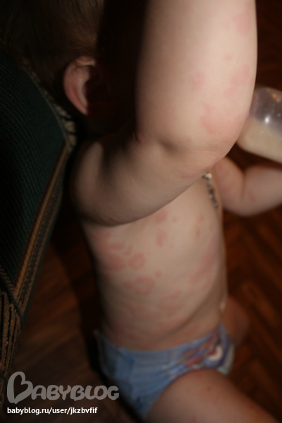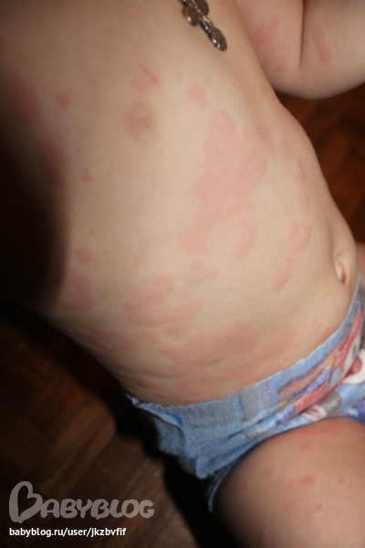 вчера они были не такие большие и все было в большей степени подмышками(я фото вчера выкладывала),давали фенистил-к вечеру вроде они поледнели немного,просто у соседей малыша клопы кусают...очень боимся,но как посмотрели,вроде не похоже...а сегодня уже пятна есть и маленькие как при укусе и вот такие огромные как на фото...екоторые в середине светлые,а кайма-красная,некоторые между собой сливаются.а некоторые отдельно...