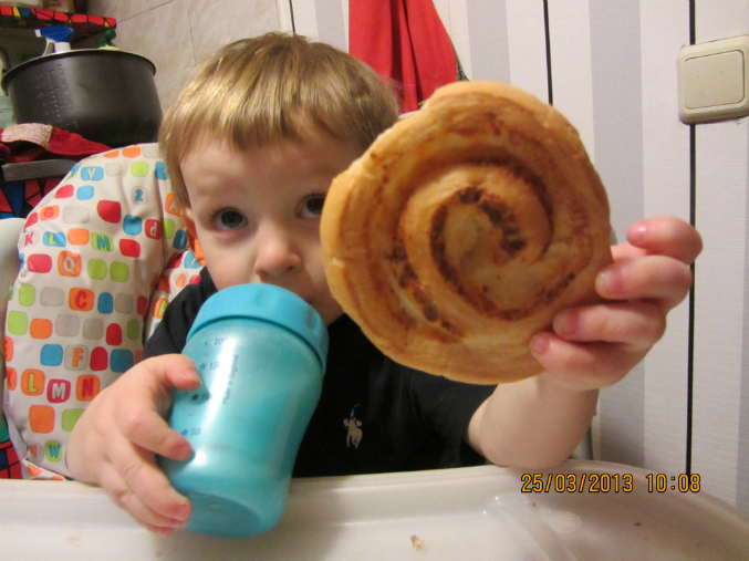 У нас клыки полезли...пипец! Бедные коты, моя нашу кошку за хвост таскает))) Как вы хорошо кушанье, даже булки! А у нас опять рвота и никакого аппетита(((