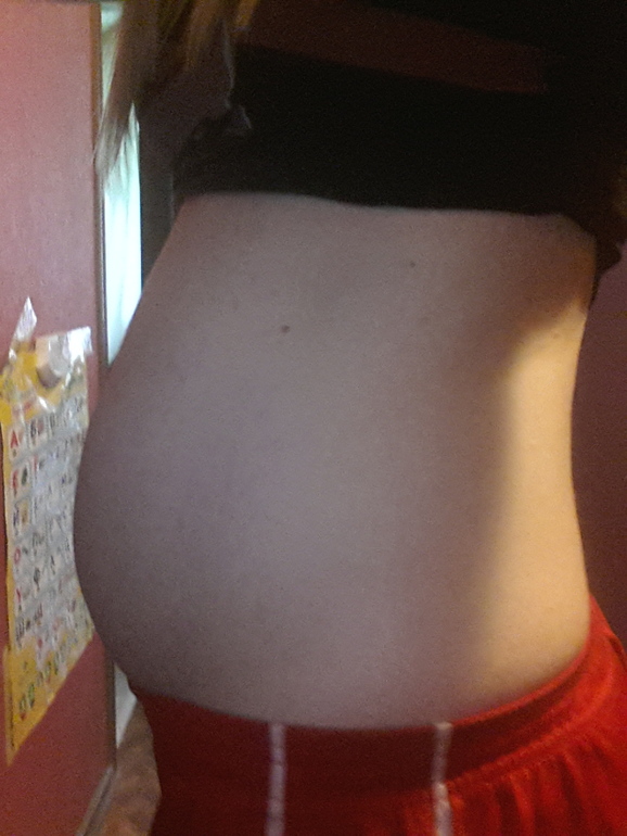 Животик очень округлился, вчера первая соседка меня спалила и то потому, что в гости к ней пришла)) а так пока особо никого не встречаю, чтобы меня спалить))
