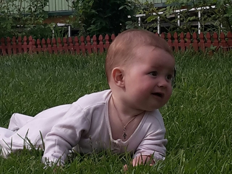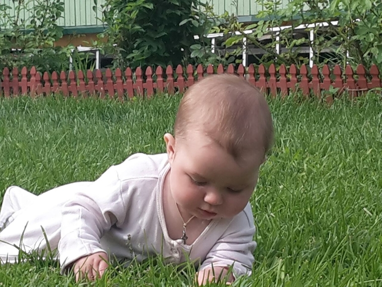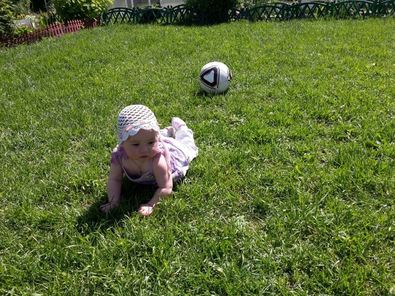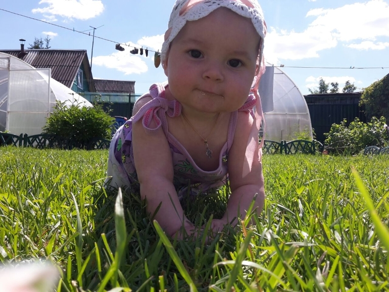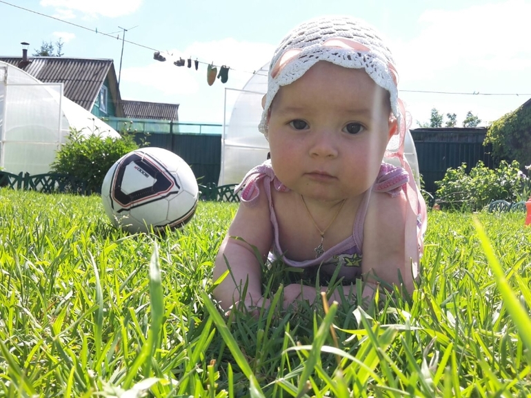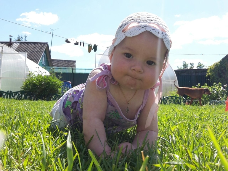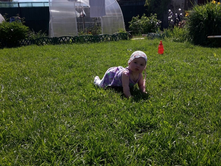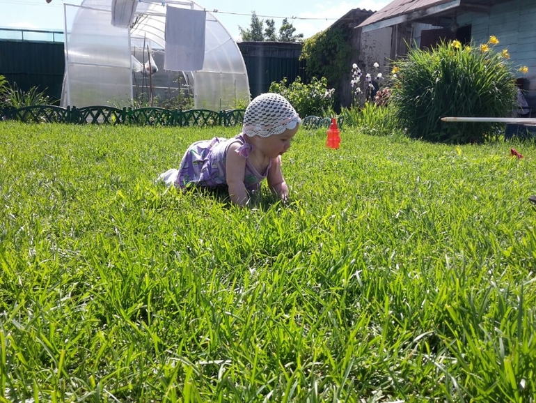 Погода была не самая теплая,на травке(на даче) мы смогли побыть всего пару дней,а все остальное время или в доме,или на моих руках/в эрго