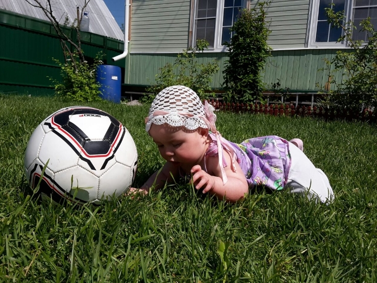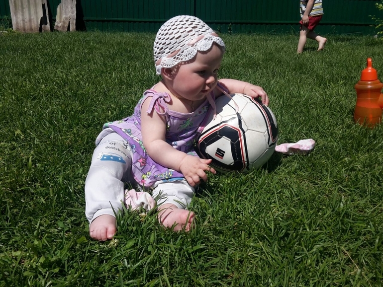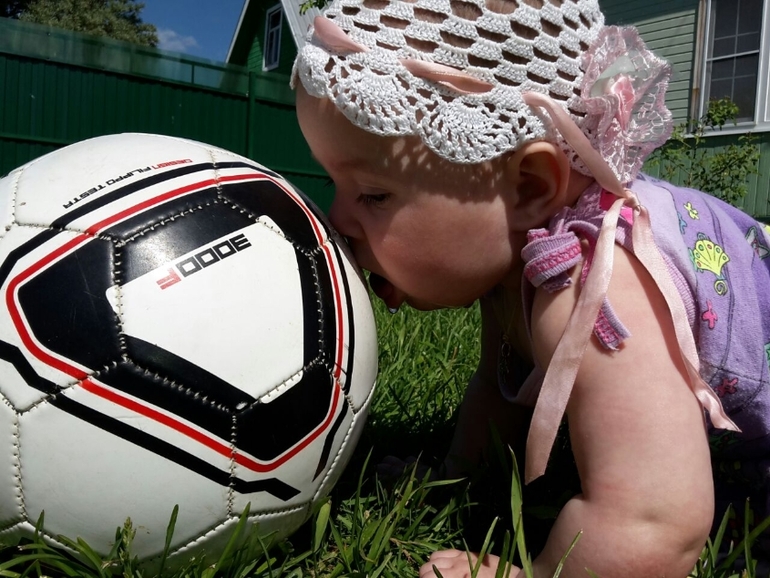 Какая милая и очаровательная! Ещё один игрок в команде)) футболистка маленькая!)))