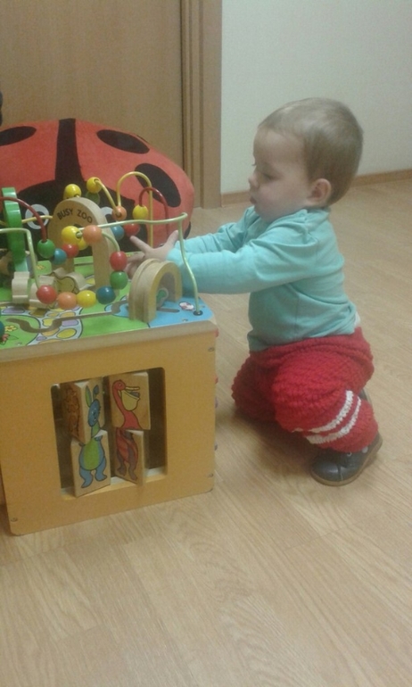 ходим только вдоль опоры,по квартире носимся на четвереньках со скоростью света...