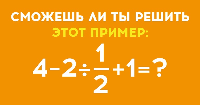 Если в ответе у тебя получилась единица, значит ты прекрасно усвоил школьный курс математики! Если же тебе показалось, что правильным ответом будет четыре, значит тебе следует повторить деление дробей. Ведь 2 ÷ 1/2 = 4! Но люди часто забывают, что вторую дробь при делении нужно перевернуть, и вместо этого по привычке сокращают двойки, как это следует делать при умножении. Ну а если у тебя вышло другое число, это означает, что тебе не мешало бы вспомнить азы математики. В школе бы тебе поставили двойку!