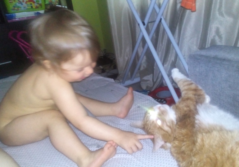 а вот старший раньше смеялся, когда она его била, теперь уже не смешно, потому, что бьет она больно. Но она и теперь ждет, что он будет веселиться, лупит его, а он сидит грустный и защищаться не пытается. Теперь приходится его защищать))))