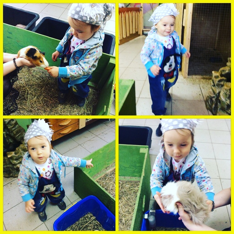 Мы добрались до контактного зоопарка)решили сегодня в маленький сходить))еле увели ее оттуда...эмоций море!!!