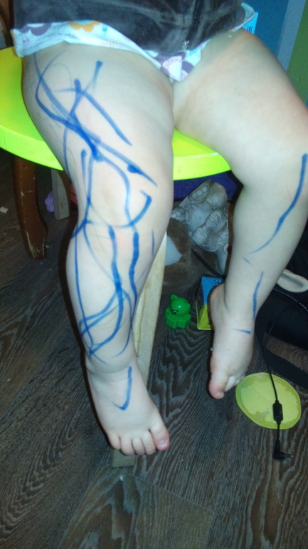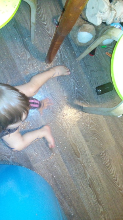 Мы такие же татухи на ногах рисовали, только ручкой) и гречкой вчера наигрались) сегодня я стала умнее и мы играли крупами на одеяле, потом просто на улице им потрясла, хоть не мести) погода изматывает, конечно, разносим дом...