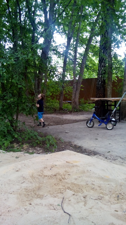 Никак не хочет пересаживаться на даче на большой велек и все гоняет на лексус трайке трехколесном,на который перенесла уже сестра)))