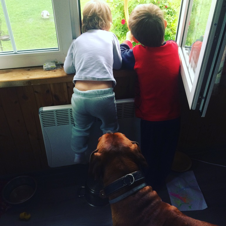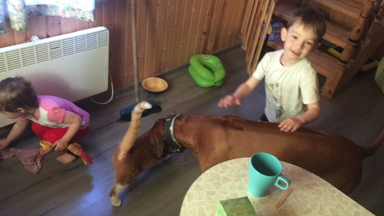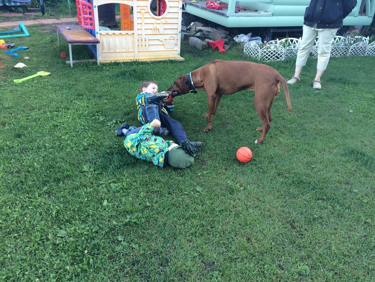 Мамка моя уехала на работу ,я пока одна с детьми и животными ))